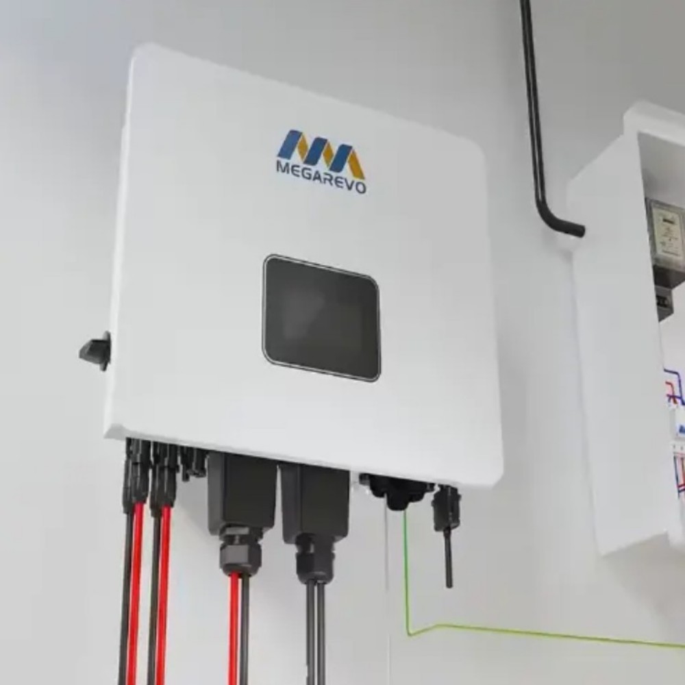 The Megarevo 5KW O5KL1D is designed for off-grid applications, supporting up to 1.5x DC oversizing and 48V battery storage. It features an LCD display for easy operation, optional WIFI/GPRS remote monitoring, and IP65 protection for indoor/outdoor use.